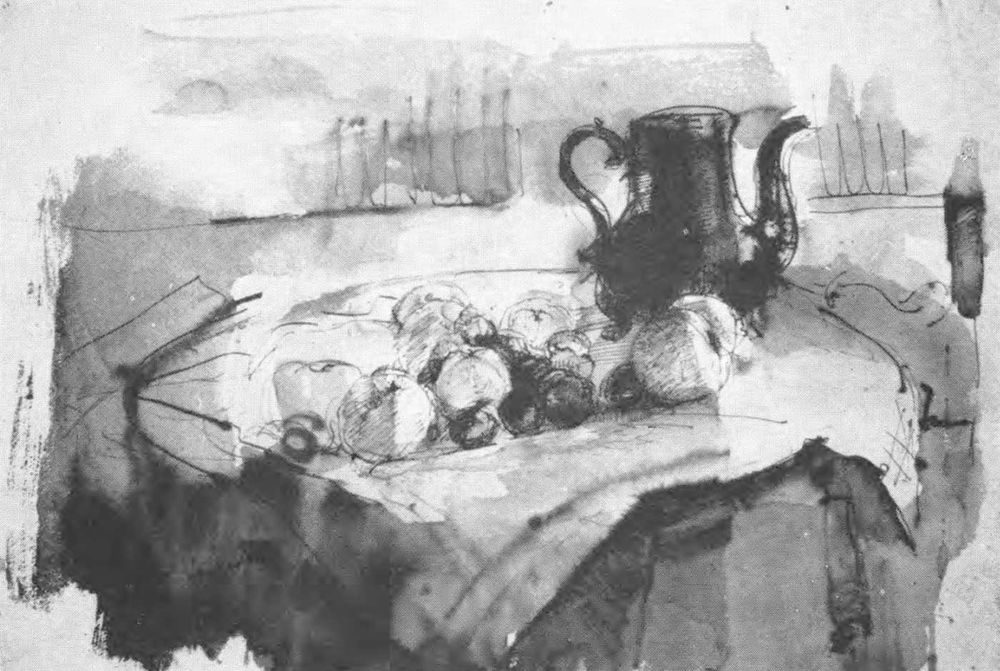 "Luister, ik heb wat de techniek betreft maar een beginsel: met zo weinig mogelijk middelen zoveel mogelijk zeggen, want ik vind dat men de matière dikwijls overdadig gebruikt. Bij mij is het gewone pentekening of potlood of nogal dikwijls gewassen pentekening; en als ik er niet kom met pen of potlood dan gebruik ik lucifertjes , die ik in de inkt dop; ge weet, om die dikkere lijnen te bekomen die men bij Rembrandt zo veel vindt; hij gebruikte daarvoor ganzenpennen, maar dat is uit de wereld. Ik hang geen enkel -isme aan; ik wil alleen zo eerlijk mogelijk zijn en me aan geen enkele voorbijgaande mode binden; van esthetische theorieën rond mijn werk houd ik niet; het werk is van groter belang dan de theorie".